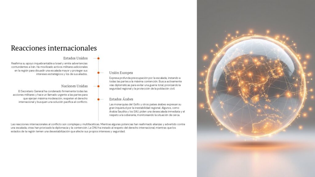 | Estados Unidos | Mantener hegemonía regional, proteger a Israel, contener programa nuclear iraní | Lidera los ataques | Evitar guerra terrestre prolongada; preservar control energético |