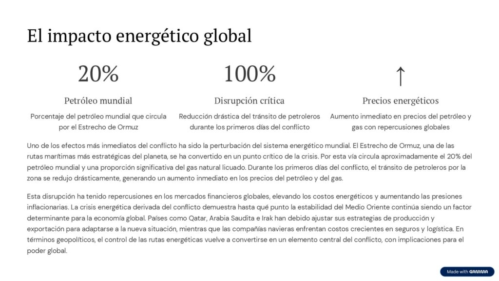 La crisis energética derivada del conflicto demuestra hasta qué punto la estabilidad del Medio Oriente continúa siendo un factor determinante para la economía global.